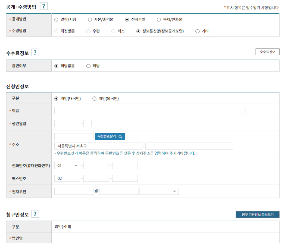 "정보공채청구" 탭에서 청구서 서식에 맞춰 작성하신 후 제출하시면 되고,