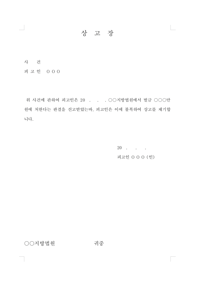 - 형사소송 : 판결이 있은 날로부터 7일 이내 원심법원에 상고장 제출해야 합니다.