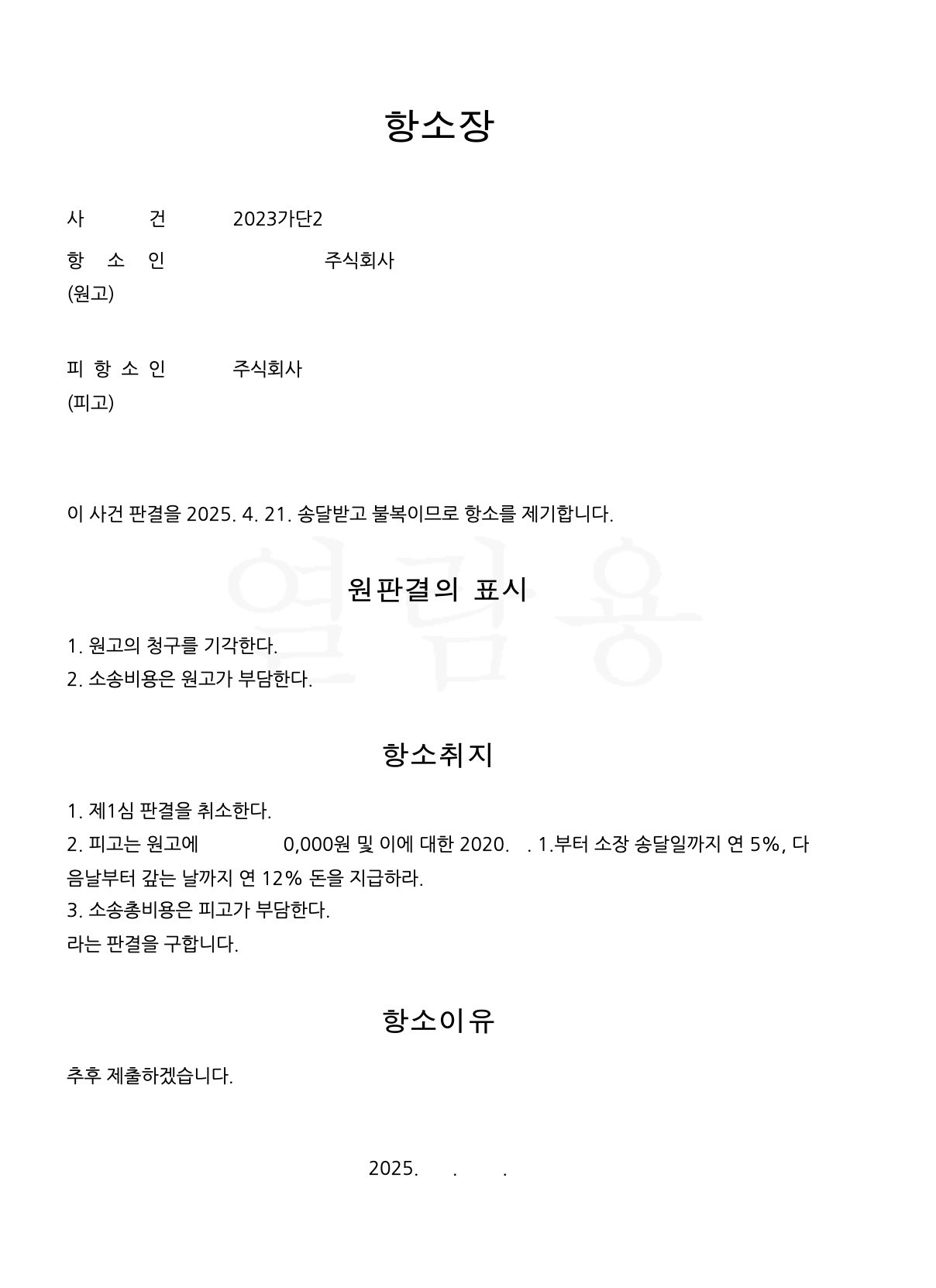 - 세부적인 논리는 항소이유서에 기술합니다.