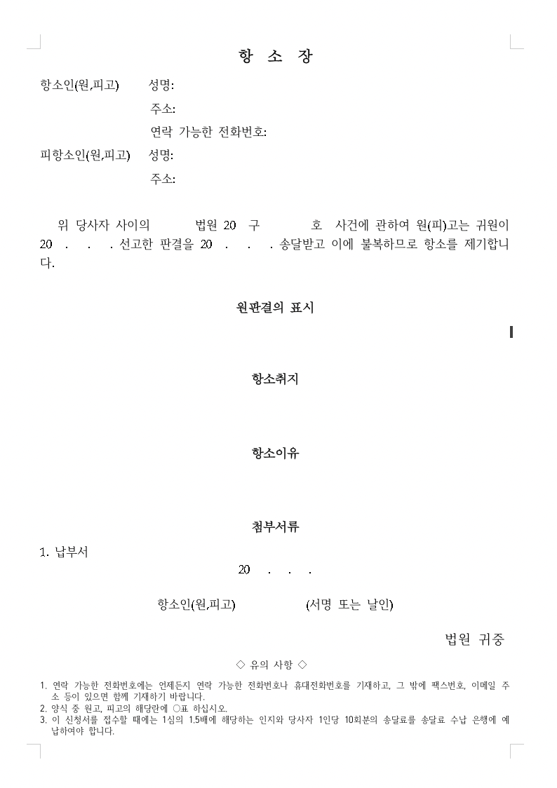 항소장 예시